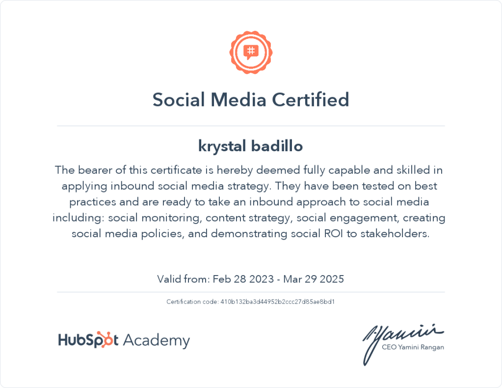Through this certification I was able to improve my social media skills, and gained knowledge in how to orchestrate a both effective and successful social media campaign